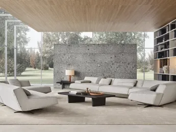 Salotto in pelle con penisola Bellport di Poliform