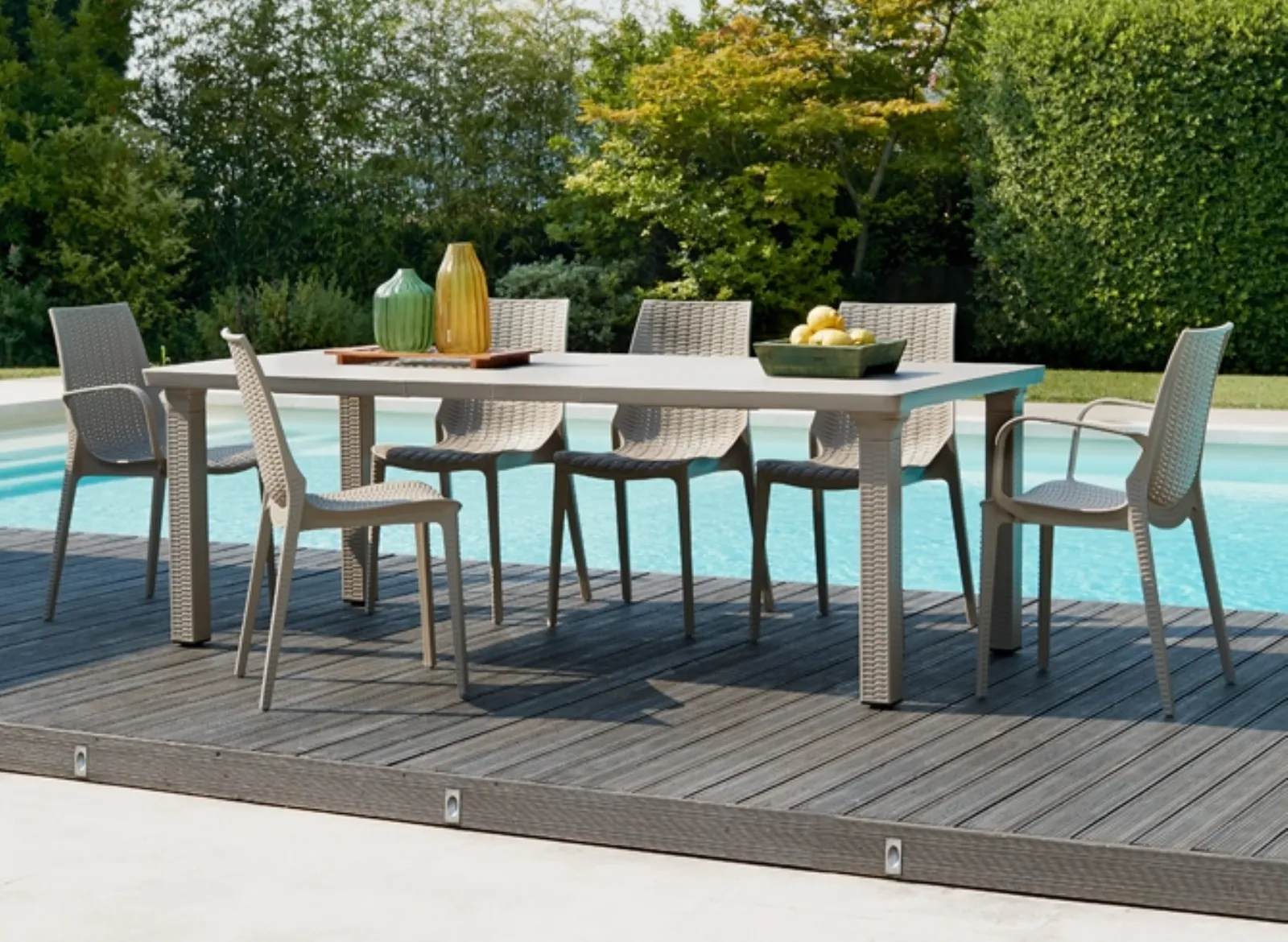 - Mobili, oggetti accessori e sedie da giardino, realizzati con materiali resistenti alle condizioni atmosferiche e doti estetiche di alta qualità;