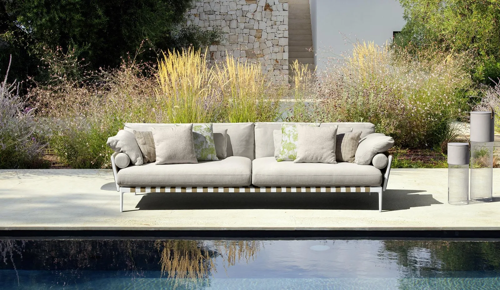 Per fruire di grandi spazi aperti o di piccole aree all'aria aperta, la scelta dell’Arredo Giardino è imprescindibile: se vuoi divani da giardino in tessuto, il modello visibile in foto fa per te. Quando c'è bel tempo gli spazi outdoor sono una continuazione della casa, spazio da interpretare con stile e funzionalità: i mobili e complementi per esterni occorre che siano esteticamente gradevoli e resistenti, come quelli in tessuto della marca. Divano Salinas con penisola di Talenti: i prodotti della marca, dai tavoli ai salottini, sanno ricreare un'atmosfera accogliente resistendo negli anni a sole e pioggia.