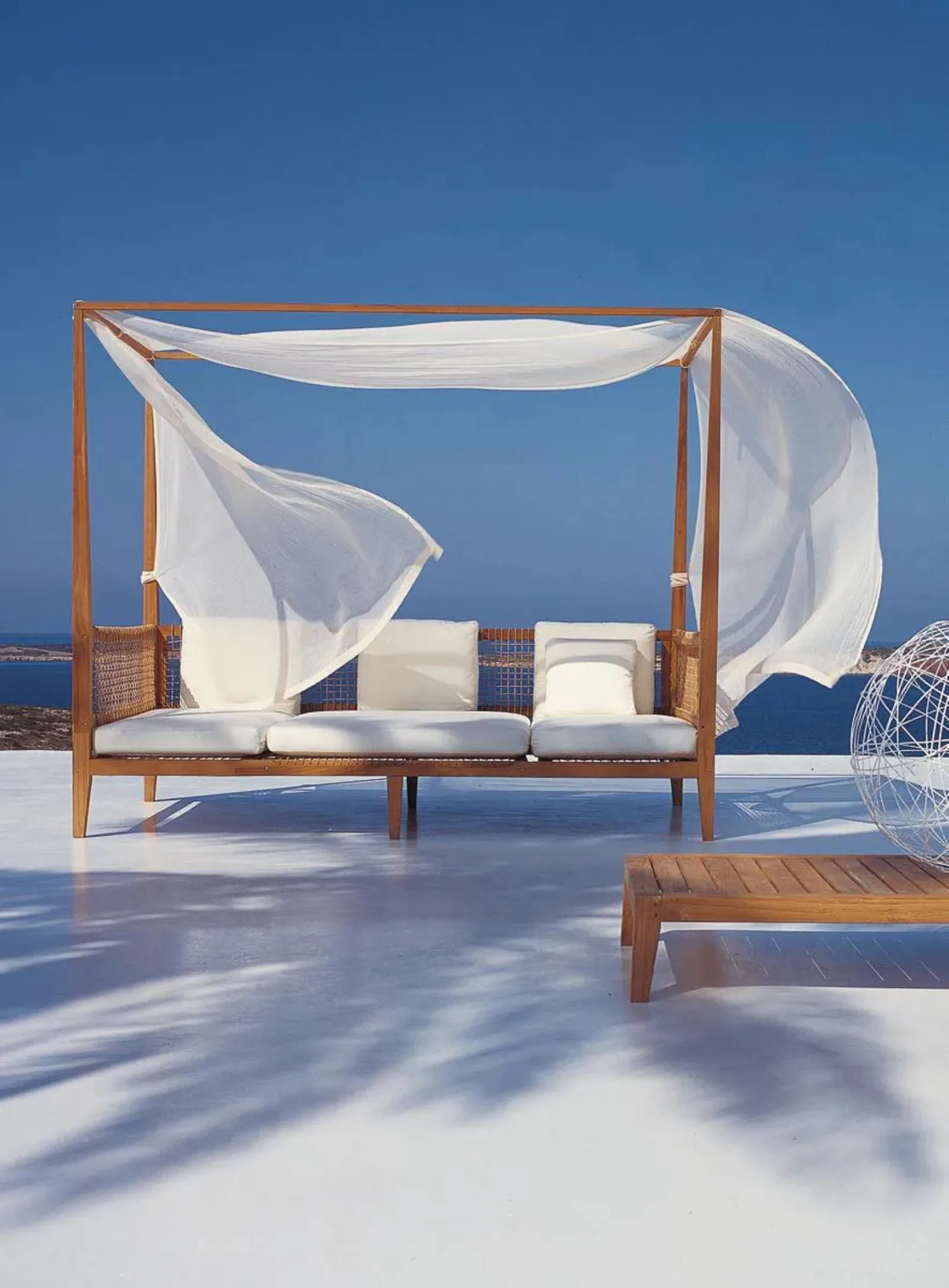 Divano Alcova Synthesis di Unopiu: i prodotti della marca, dai tavoli ai salottini, sanno ricreare un'atmosfera assai funzionale resistendo nel tempo alle condizioni climatiche. Per usufruire di giardini spaziosi o di terrazzini open air, l'acquisto dell’Arredo Giardino è essenziale: se desideri divani da giardino in legno, il modello presente in foto fa per te. Nella stagione estiva i giardini si fanno una continuazione della casa, spazio da organizzare con stile e funzionalità: i mobili e oggetti accessori da esterno occorre che siano belli e resistenti, come quelli in legno della marca.