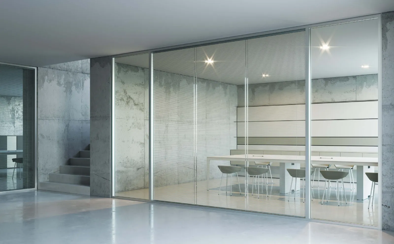Scopri la ricca gamma di pareti divisorie in vetro Frezza per l'ufficio, come il modello K82 versione 4. Arreda l'ufficio e crea spazi moderni con l'ampia scelta di elementi di arredo di Frezza.