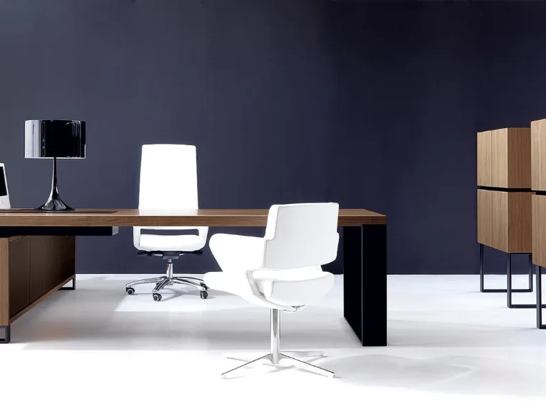 L’Arredo Ufficio include mobili ed elementi accessori di centrale importanza: scopri nel nostro sito una ricca gamma di scrivanie direzionali e soluzioni realizzabili su misura per te, studiate per arredare gli spazi impreziosendoli. Nell'arredamento di un ufficio che si rispetti, scegli i prodotti dei più noti marchi presenti in commercio, anche in legno come il modello visibile in foto. Scrivania Direzionale in noce New Loop di IVM: questa proposta è disponibile nel nostro sito di mobili per Ufficio e giardino. I nostri professionisti d'arredo ti attendono per proporti sedie, scrivanie, armadiature e tanti altri arredi per uffici.