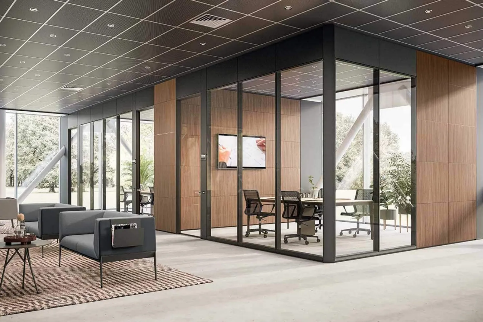 Quadrifoglio offre soluzioni d'arredo uniche e di qualità superiore, utili per creare ambienti lavorativi funzionali, ergonomici ed esteticamente gradevoli. Scegli le pareti divisorie modulabili P1 per trasformare il tuo ufficio in un ambiente di lavoro confortevole, moderno ed efficiente.