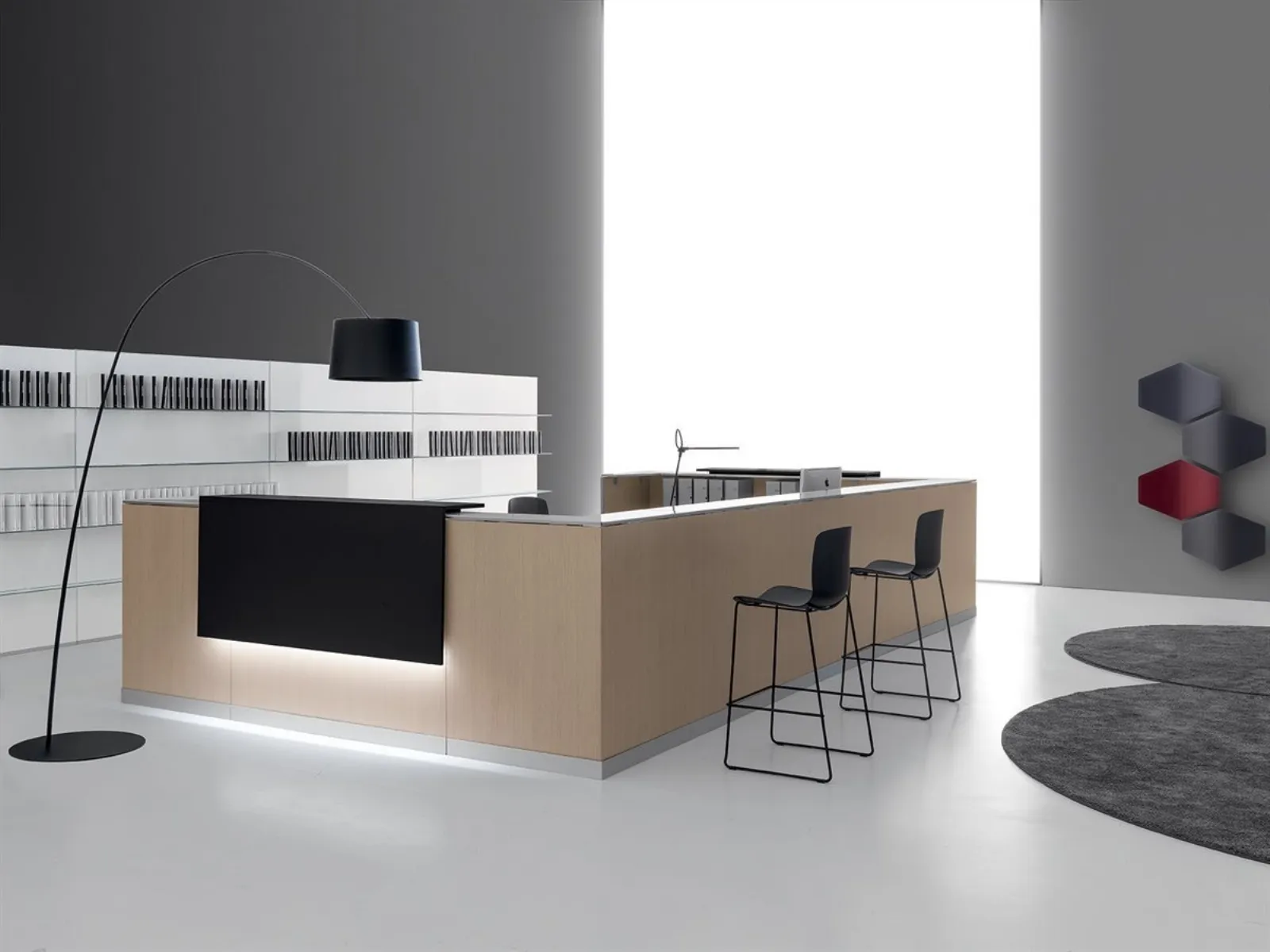 - Grazie alle forme decise e alle composizioni personalizzabili, troverai la soluzione più adatta per sfruttare al meglio ogni angolo della tua struttura.
