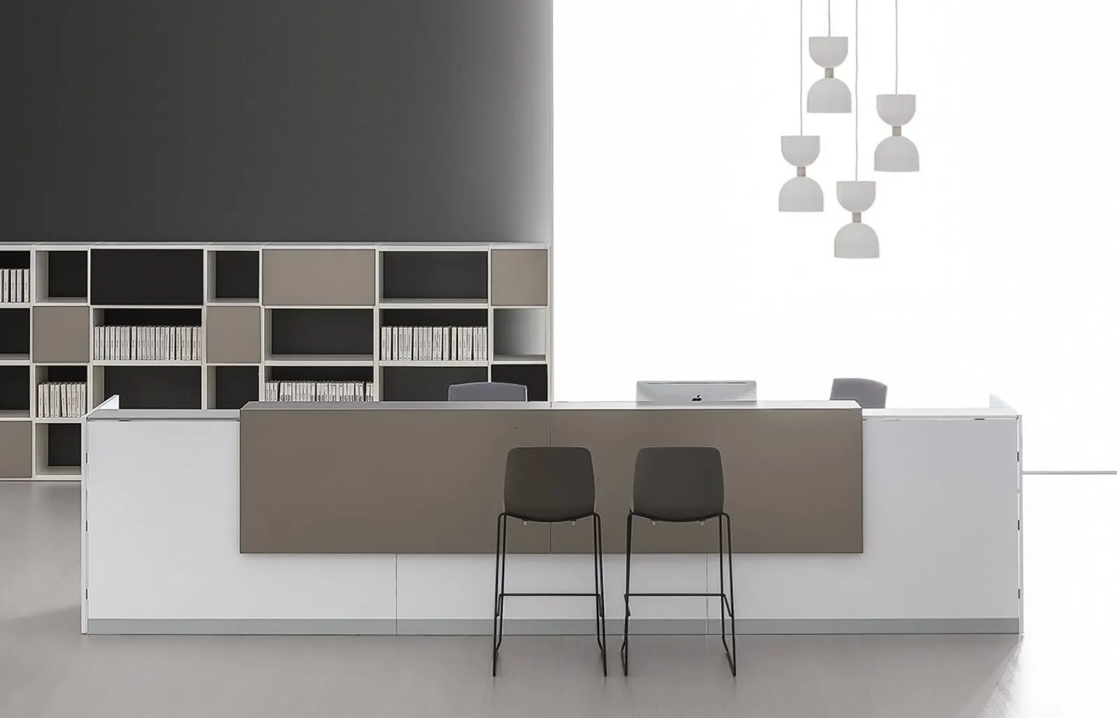 - Le originali proposte di banconi reception della marca DVO, come il modello Qubo DV703 nella fotografia, offrono soluzioni pratiche ed efficienti per arredare ogni spazio lavorativo.