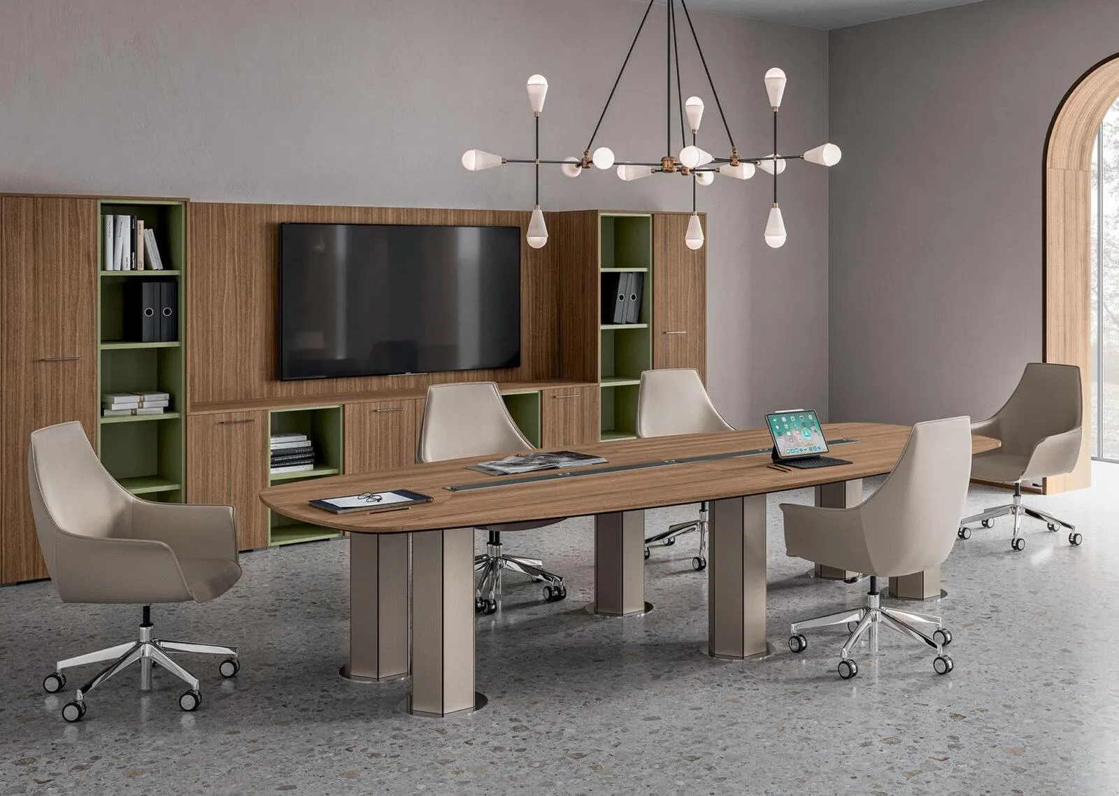 Nel nostro portale dedicato all’Arredo Ufficio ti sta aspettando un ricco catalogo di mobili per spazi lavorativi in legno dei migliori produttori. Contatta i nostri arredatori e potrai visionare in prima persona i migliori modelli di scrivanie direzionali in commercio. Le più originali proposte di scrivanie direzionali del brand, come il modello nella fotografia, ti consentiranno di arredare uffici di ogni genere, sfruttando bene ogni angolo. Scrivania direzionale per sala riunioni Vela elettrificato di Walco: materiali durevoli e resistenti negli anni, forme decise e composizioni realizzabili su misura ti aspettano.
