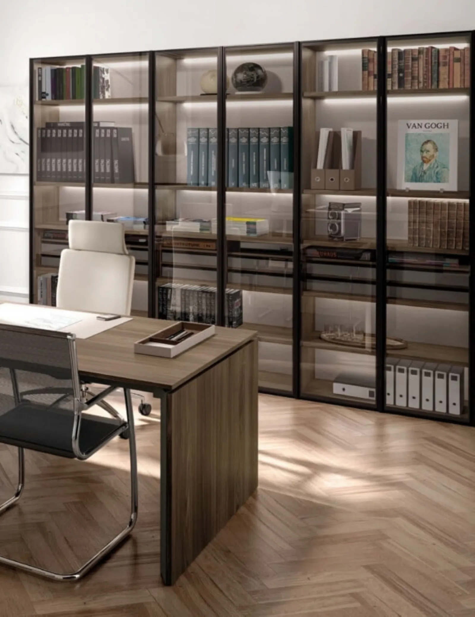 Per un ambiente lavorativo di qualità, opta per un arredamento moderno ed accogliente, come quello offerto da Zalf con le sue librerie in vetro e melaminico.