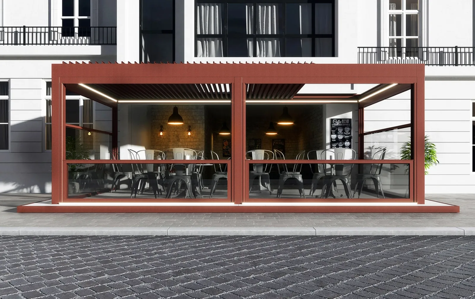 Scopri le soluzioni più esclusive della marca Dirello per la tua pergola bioclimatica dalle forme decise modello Orchestra Addossata. Per l'ufficio o per il giardino, scegli il meglio!