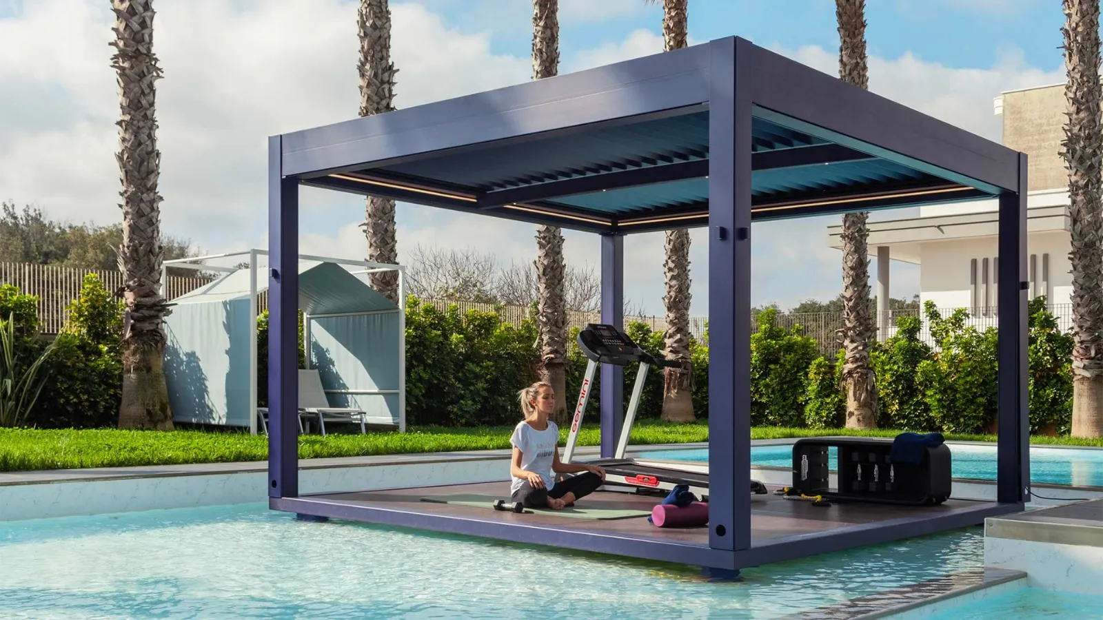 Pergola bioclimatica QBox Blue di Sprech