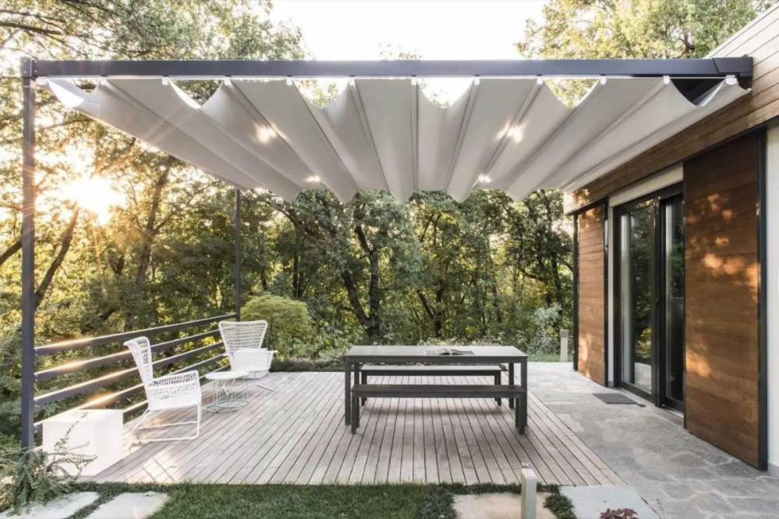 Contattaci per preventivi di arredo giardino, sia dalle linee più classiche che attuali, e potrai trovare il modello che fa al caso tuo. Ottimizza lo spazio all'aperto, terrazzo o balcone garantendoti praticità e un'ottima estetica con i prodotti di Corradi. Scopri un'ampia collezione di: - Pergole a isola - Pergole addossate alle pareti - Mobili e complementi per esterni - Gazebi - Pergolati in legno, metallo e ulteriori materie prime di qualità. Con la Pergola Exyl di Corradi potrai valorizzare il look del giardino, per poterne godere perfettamente tutto l'anno. La collezione di pergole di Corradi offre una vasta gamma di modelli adatti ad ogni esigenza, oltre ad essere all'avanguardia dal punto di vista estetico. La pergola Exyl è dotata di una struttura robusta e leggera, con diversi materiali di finitura, come il legno o il metallo, e può essere personalizzata in base alle tue preferenze. Grazie alla sua modularità e versatilità, la pergola Exyl può essere installata in qualsiasi ambiente esterno, come un giardino, un terrazzo o un balcone. Potrai inoltre scegliere tra una varietà di materiali per la copertura, per creare un'atmosfera calda e accogliente. La pergola Exyl di Corradi è la soluzione perfetta per rinnovare il tuo giardino con stile ed eleganza!