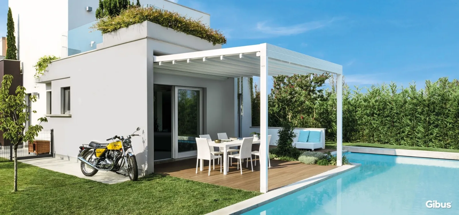Contattaci per preventivi di arredo giardino, sia dalle linee più tradizionali che moderne, e troverai il modello che fa al caso tuo. Valorizza lo spazio esterno, terrazzo o balcone assicurandoti praticità e grande valore estetico con i prodotti di ##Marca Pergole##. Scopri un'ampia linea di Pergole a isola o addossate al muro, mobili e oggetti accessori per esterni gazebi e pergolati in legno massello, metallo e ulteriori materie prime di qualità. Con la Pergola Quadra di Gibus potrai completare il look della zona verde, per poterne godere alla perfezione in ogni stagione.
