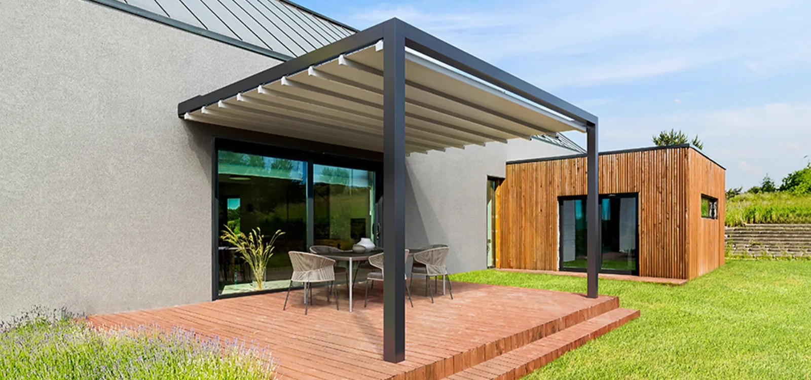 Arredare il tuo outdoor con funzionalità e un'ottima estetica è imprescindibile, per questo proponiamo le più belle Pergole dei migliori produttori per completare i tuoi locali. Scopri la Pergola Lani addossata di Gibus qui presente, realizzata in materiali tecnici e dalle forme decise. Contattaci per info e preventivi per i mobili e complementi da esterno della firma e dai vita al giardino che hai sempre voluto. Grazie all'eccellenza di Pergole e pergolati autoportanti o a isola della firma sarà facile assicurarti una serena vita di tutti i giorni negli spazi outdoor, in ogni stagione.