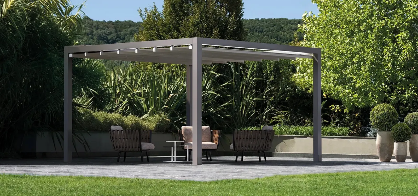 Scopri la Pergola Lani di Gibus qui presente, realizzata in materiali tecnici e dalle forme decise. Grazie alla qualità di Pergole e pergolati autoportanti o a isola dell'azienda sarà semplice assicurarti una serena quotidianità negli spazi outdoor, in tutte le stagioni. Progettare il tuo outdoor con funzionalità e un'ottima resa estetica è imprescindibile, per questo proponiamo le più belle Pergole delle migliori marche per completare i tuoi spazi. Contattaci per info e preventivi per i mobili e complementi per esterni dell'azienda e dai vita al giardino che hai sempre desiderato.