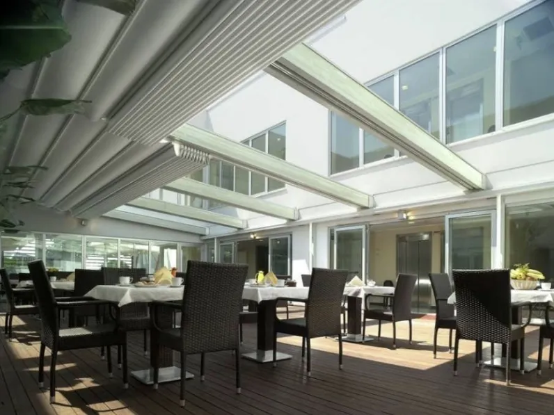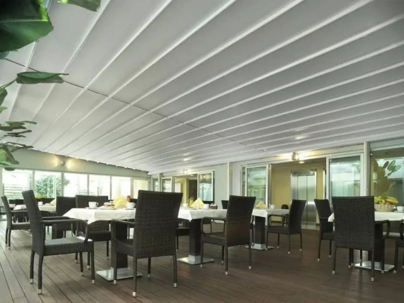 Materiali tecnici e linee decise contraddistinguono tutti i gazebi e le Pergole addossate alle pareti o autoportanti firmate dal noto e conosciuto brand. Grazie alla Pergola Pergotenda Impact di Corradi nell'immagine potrai ricreare uno spazio assai funzionale in giardino, terrazzo o balcone, garantendoti funzionalità e un ottimo effetto estetico. Contattaci per info e preventivi per Pergole e soluzioni per esterni realizzabili su misura per te: potrai impreziosire i tuoi interni. Compila il form per info e preventivi su una ricca gamma di pergolati di ottima fattura.