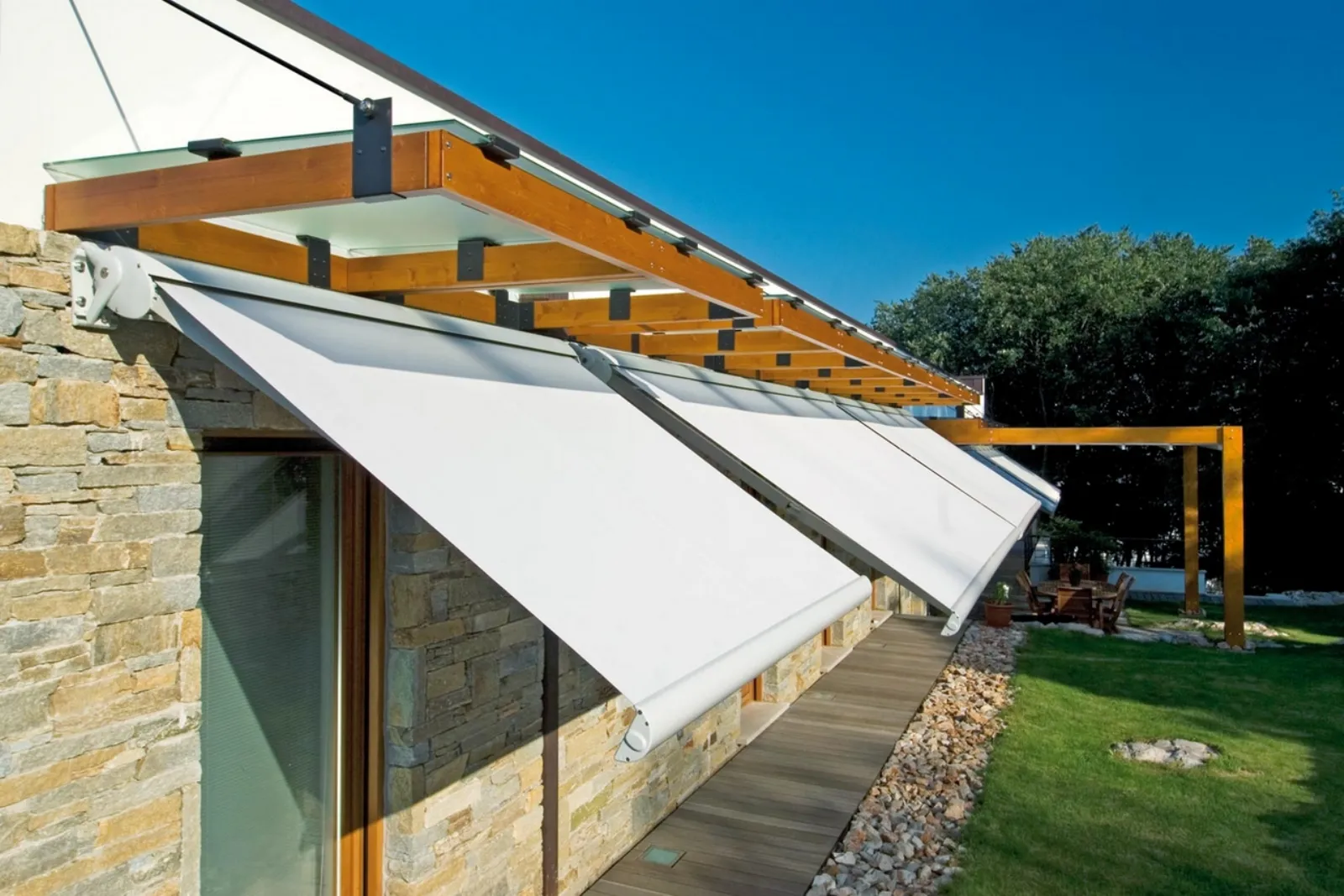- Possibilità di scegliere tra tende da esterno a muro e autoportanti